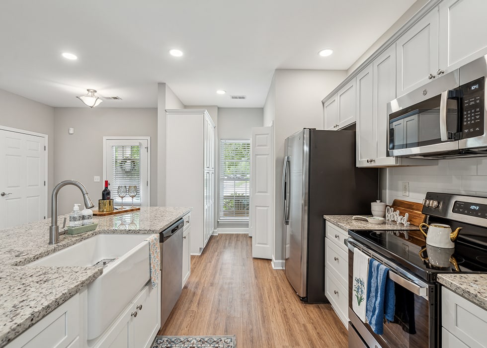 - Kitchens with granite and quartz countertops